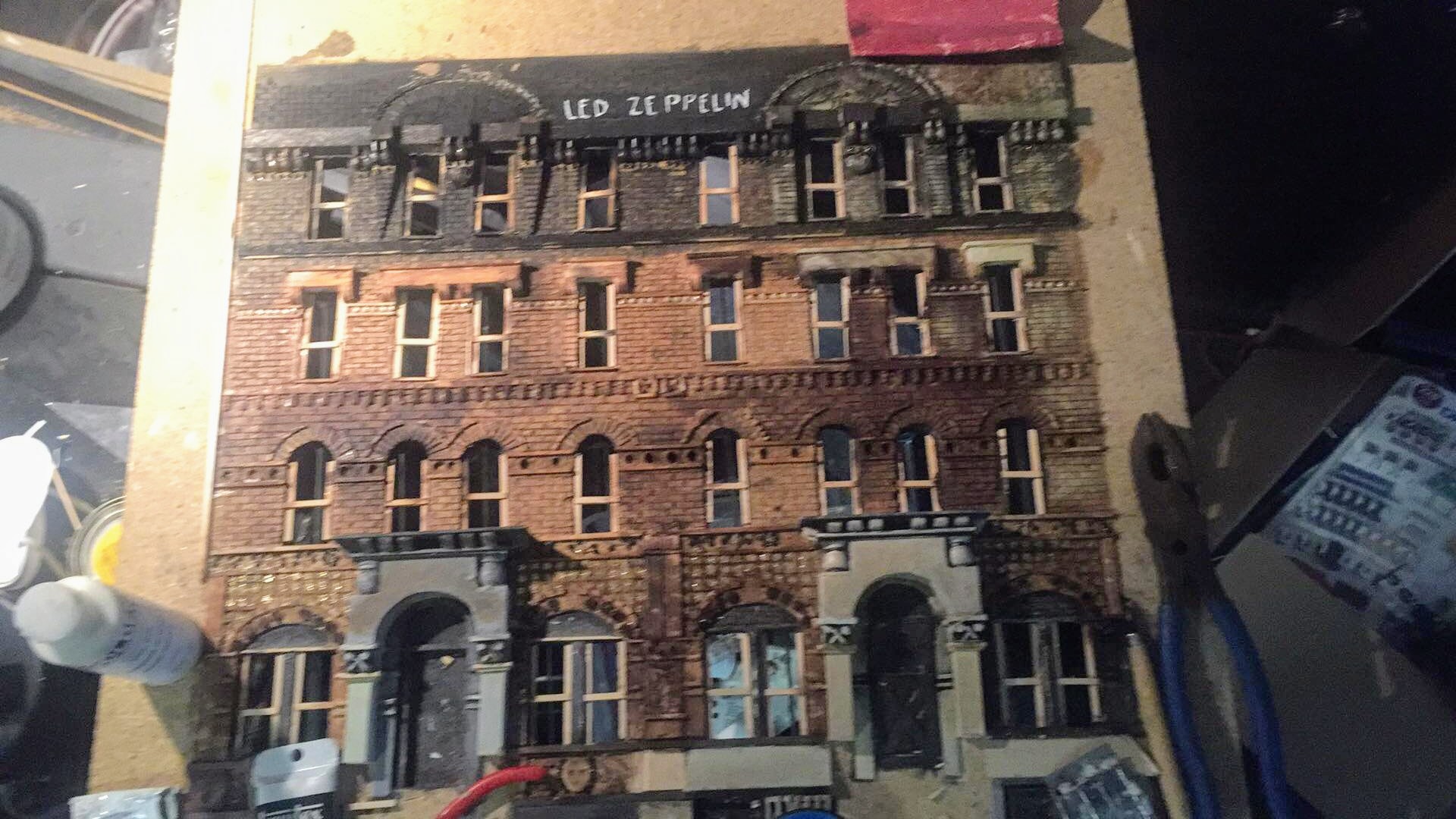 Unlike the last one, I have some pictures I took along the way that either I or my daughter took. I don’t normally share the process publicly but this piece, this second Physical Graffiti means a lot to me and I want to share the labor and passion that I have put into it along the way.