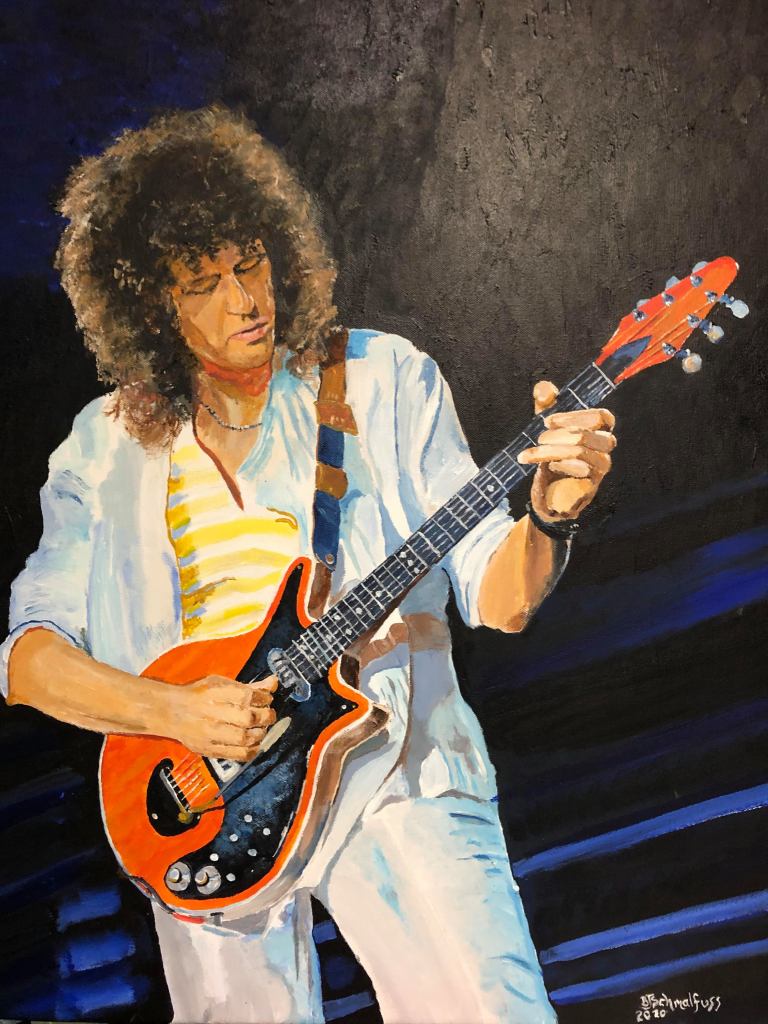 This is the first time I’ve painted Brian May – Astrophysicist and co founder of Queen. He’s responsible for such songs as I want it all and The show must go on! One of the great rock bands, I’ve painted Freddie Mercury, time to paint someone new and equally inspiring.