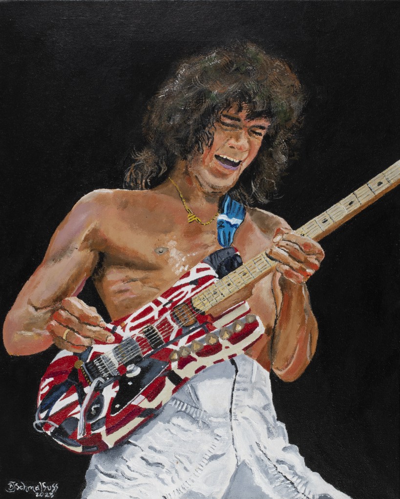 Motivated by the fact that I had seen Van Halen 6 times, with 3 different lead singers , and it was always the electrifying Eddie Van Halen that made the shows, my latest painting I tried to capture the energy, the passion and the heart of Eddie while on stage!